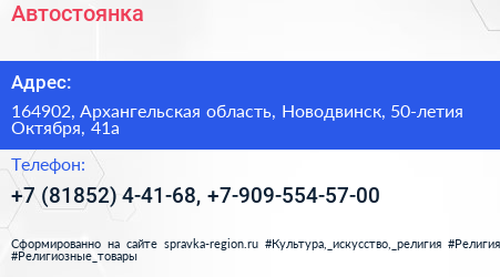 Автостоянка по адресу 164902, Архангельская область, Новодвинск, 50-летия Октября, 41а в дальнейшем Организация, размещена в следующих категориях: