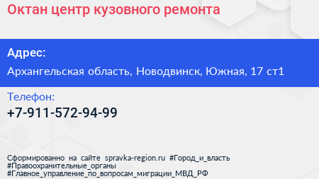 Октан, центр кузовного ремонта по адресу Архангельская область, Новодвинск, Южная, 17 ст1 в дальнейшем Организация, размещена в следующих категориях: