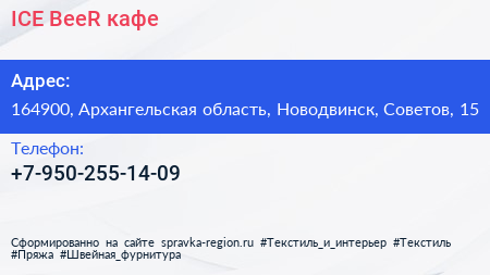 ICE BeeR, кафе по адресу 164900, Архангельская область, Новодвинск, Советов, 15 в дальнейшем Организация, размещена в следующих категориях: