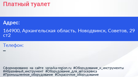Платный туалет по адресу 164900, Архангельская область, Новодвинск, Советов, 29 ст2 в дальнейшем Организация, размещена в следующих категориях: