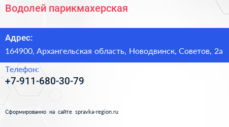 Водолей, парикмахерская по адресу 164900, Архангельская область, Новодвинск, Советов, 2а в дальнейшем Организация, размещена в следующих категориях: