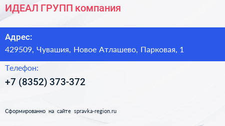 ИДЕАЛ ГРУПП, компания по адресу 429509, Чувашия, Новое Атлашево, Парковая, 1 в дальнейшем Организация, размещена в следующих категориях: