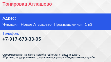 Тонировка Атлашево по адресу Чувашия, Новое Атлашево, Промышленная, 1 к3 в дальнейшем Организация, размещена в следующих категориях: