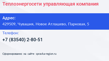 Теплоэнергосети, управляющая компания по адресу 429509, Чувашия, Новое Атлашево, Парковая, 5 в дальнейшем Организация, размещена в следующих категориях: