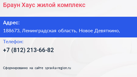 Браун Хаус, жилой комплекс по адресу 188673, Ленинградская область, Новое Девяткино, в дальнейшем Организация, размещена в следующих категориях: