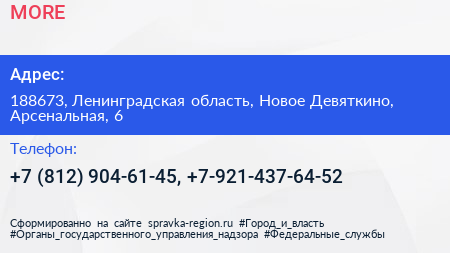 MORE по адресу 188673, Ленинградская область, Новое Девяткино, Арсенальная, 6 в дальнейшем Организация, размещена в следующих категориях: