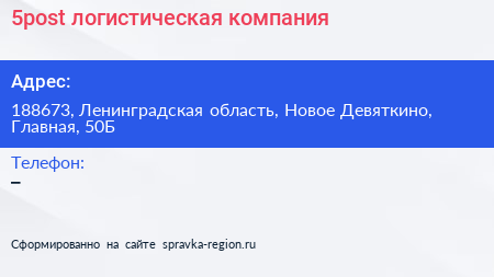 5post, логистическая компания по адресу 188673, Ленинградская область, Новое Девяткино, Главная, 50Б в дальнейшем Организация, размещена в следующих категориях: