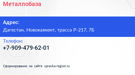 Металлобаза по адресу Дагестан, Новокаякент, трасса Р-217, 7Б в дальнейшем Организация, размещена в следующих категориях: