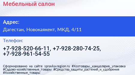 Мебельный салон по адресу Дагестан, Новокаякент, МКД, 4/11 в дальнейшем Организация, размещена в следующих категориях:
