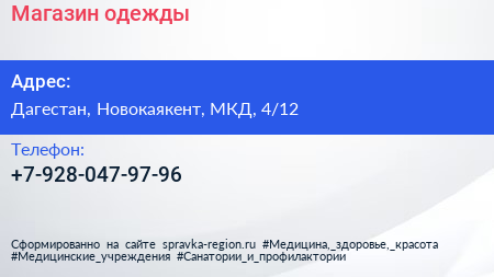 Магазин одежды по адресу Дагестан, Новокаякент, МКД, 4/12 в дальнейшем Организация, размещена в следующих категориях: