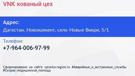 VNK, кованый цех по адресу Дагестан, Новокаякент, село Новые Викри, 5/1 в дальнейшем Организация, размещена в следующих категориях: