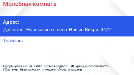 Молебная комната по адресу Дагестан, Новокаякент, село Новые Викри, 44/2 в дальнейшем Организация, размещена в следующих категориях: