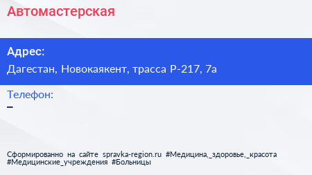 Автомастерская по адресу Дагестан, Новокаякент, трасса Р-217, 7а в дальнейшем Организация, размещена в следующих категориях:
