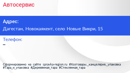 Автосервис по адресу Дагестан, Новокаякент, село Новые Викри, 15 в дальнейшем Организация, размещена в следующих категориях: