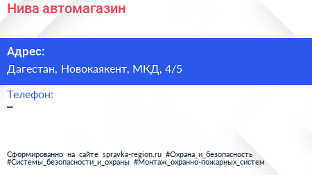 Нива, автомагазин по адресу Дагестан, Новокаякент, МКД, 4/5 в дальнейшем Организация, размещена в следующих категориях: