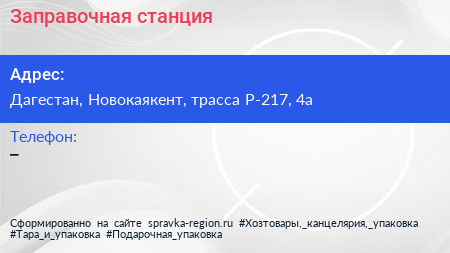 Заправочная станция по адресу Дагестан, Новокаякент, трасса Р-217, 4а в дальнейшем Организация, размещена в следующих категориях: