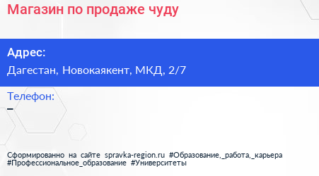 Магазин по продаже чуду по адресу Дагестан, Новокаякент, МКД, 2/7 в дальнейшем Организация, размещена в следующих категориях: