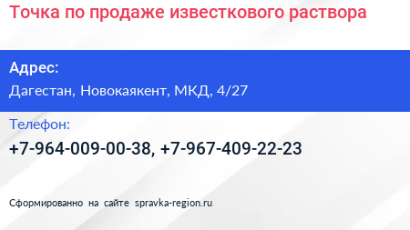 Точка по продаже известкового раствора по адресу Дагестан, Новокаякент, МКД, 4/27 в дальнейшем Организация, размещена в следующих категориях: