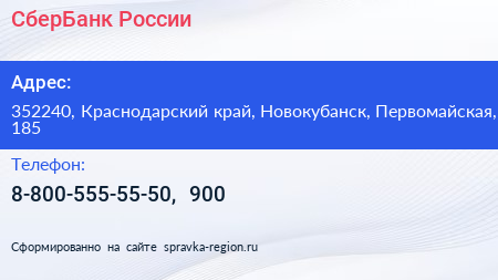 СберБанк России по адресу 352240, Краснодарский край, Новокубанск, Первомайская, 185 в дальнейшем Организация, размещена в следующих категориях: