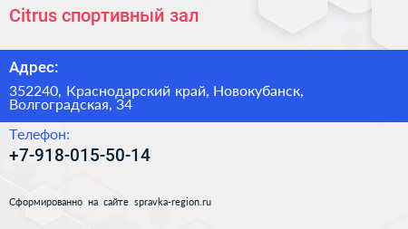 Citrus, спортивный зал по адресу 352240, Краснодарский край, Новокубанск, Волгоградская, 34 в дальнейшем Организация, размещена в следующих категориях: