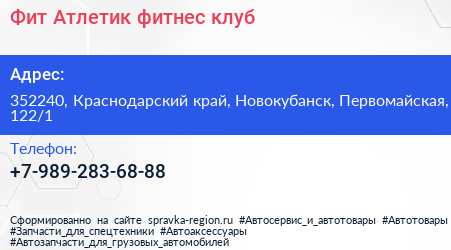 Фит-Атлетик, фитнес-клуб по адресу 352240, Краснодарский край, Новокубанск, Первомайская, 122/1 в дальнейшем Организация, размещена в следующих категориях: