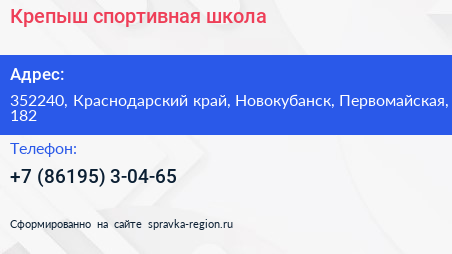 Крепыш, спортивная школа по адресу 352240, Краснодарский край, Новокубанск, Первомайская, 182 в дальнейшем Организация, размещена в следующих категориях: