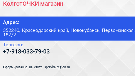 КолготОЧКИ, магазин по адресу 352240, Краснодарский край, Новокубанск, Первомайская, 187/2 в дальнейшем Организация, размещена в следующих категориях: