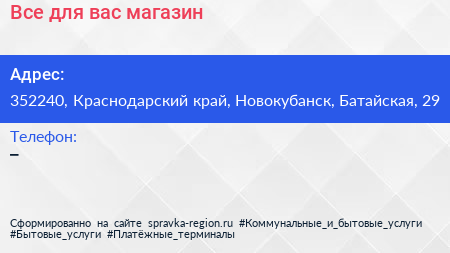 Все для вас, магазин по адресу 352240, Краснодарский край, Новокубанск, Батайская, 29 в дальнейшем Организация, размещена в следующих категориях: