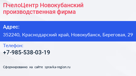 ПчелоЦентр Новокубанский, производственная фирма по адресу 352240, Краснодарский край, Новокубанск, Береговая, 29 в дальнейшем Организация, размещена в следующих категориях: