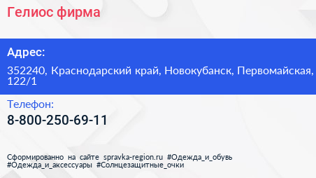 Гелиос, фирма по адресу 352240, Краснодарский край, Новокубанск, Первомайская, 122/1 в дальнейшем Организация, размещена в следующих категориях: