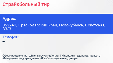 Страйкбольный тир по адресу 352240, Краснодарский край, Новокубанск, Советская, 83/3 в дальнейшем Организация, размещена в следующих категориях: