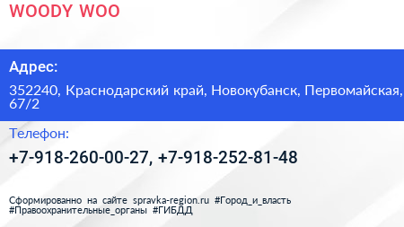 WOODY WOO... по адресу 352240, Краснодарский край, Новокубанск, Первомайская, 67/2 в дальнейшем Организация, размещена в следующих категориях: