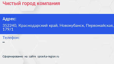 Чистый город, компания по адресу 352240, Краснодарский край, Новокубанск, Первомайская, 179/1 в дальнейшем Организация, размещена в следующих категориях: