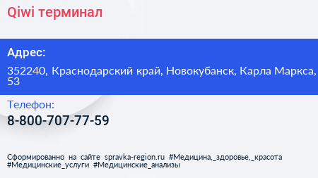 Qiwi, терминал по адресу 352240, Краснодарский край, Новокубанск, Карла Маркса, 53 в дальнейшем Организация, размещена в следующих категориях: