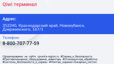 Qiwi, терминал по адресу 352240, Краснодарский край, Новокубанск, Дзержинского, 167/1 в дальнейшем Организация, размещена в следующих категориях: