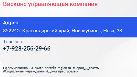 Висконс, управляющая компания по адресу 352240, Краснодарский край, Новокубанск, Нева, 38 в дальнейшем Организация, размещена в следующих категориях: