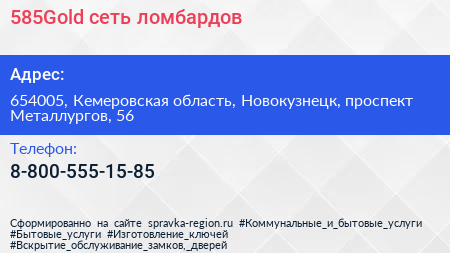 585Gold, сеть ломбардов по адресу 654005, Кемеровская область, Новокузнецк, проспект Металлургов, 56 в дальнейшем Организация, размещена в следующих категориях:
