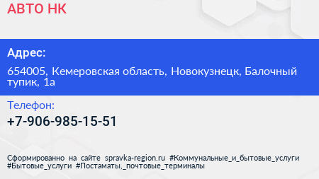 АВТО-НК по адресу 654005, Кемеровская область, Новокузнецк, Балочный тупик, 1а в дальнейшем Организация, размещена в следующих категориях: