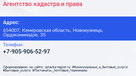 Агентство кадастра и права по адресу 654007, Кемеровская область, Новокузнецк, Орджоникидзе, 35 в дальнейшем Организация, размещена в следующих категориях:
