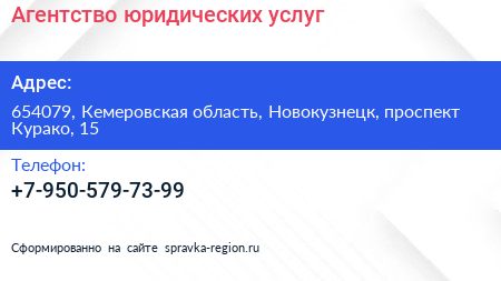 Агентство юридических услуг по адресу 654079, Кемеровская область, Новокузнецк, проспект Курако, 15 в дальнейшем Организация, размещена в следующих категориях: