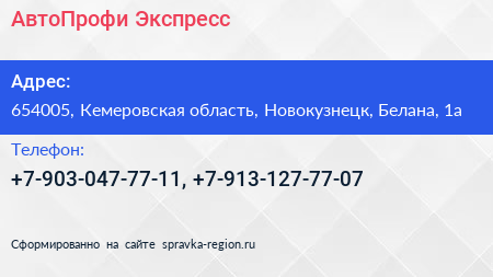 АвтоПрофи & Экспресс по адресу 654005, Кемеровская область, Новокузнецк, Белана, 1а в дальнейшем Организация, размещена в следующих категориях: