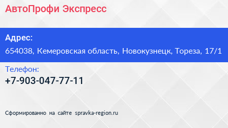 АвтоПрофи & Экспресс по адресу 654038, Кемеровская область, Новокузнецк, Тореза, 17/1 в дальнейшем Организация, размещена в следующих категориях: