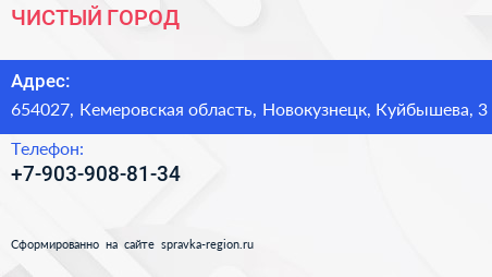 ЧИСТЫЙ ГОРОД по адресу 654027, Кемеровская область, Новокузнецк, Куйбышева, 3 в дальнейшем Организация, размещена в следующих категориях: