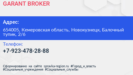 GARANT BROKER по адресу 654005, Кемеровская область, Новокузнецк, Балочный тупик, 2/6 в дальнейшем Организация, размещена в следующих категориях: