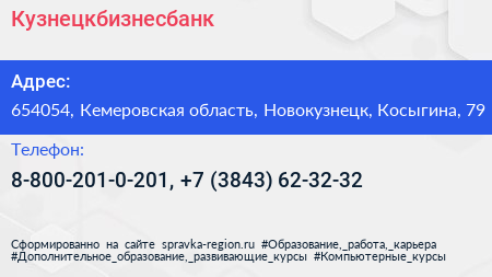 Кузнецкбизнесбанк по адресу 654054, Кемеровская область, Новокузнецк, Косыгина, 79 в дальнейшем Организация, размещена в следующих категориях: