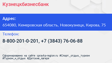 Кузнецкбизнесбанк по адресу 654080, Кемеровская область, Новокузнецк, Кирова, 75 в дальнейшем Организация, размещена в следующих категориях: