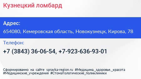 Кузнецкий ломбард по адресу 654080, Кемеровская область, Новокузнецк, Кирова, 78 в дальнейшем Организация, размещена в следующих категориях: