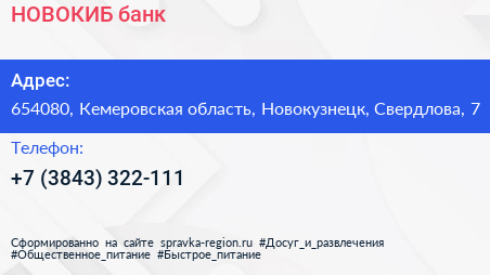 НОВОКИБ, банк по адресу 654080, Кемеровская область, Новокузнецк, Свердлова, 7 в дальнейшем Организация, размещена в следующих категориях: