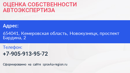 ОЦЕНКА СОБСТВЕННОСТИ АВТОЭКСПЕРТИЗА по адресу 654041, Кемеровская область, Новокузнецк, проспект Бардина, 2 в дальнейшем Организация, размещена в следующих категориях:
