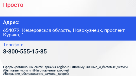 Просто по адресу 654079, Кемеровская область, Новокузнецк, проспект Курако, 1 в дальнейшем Организация, размещена в следующих категориях: